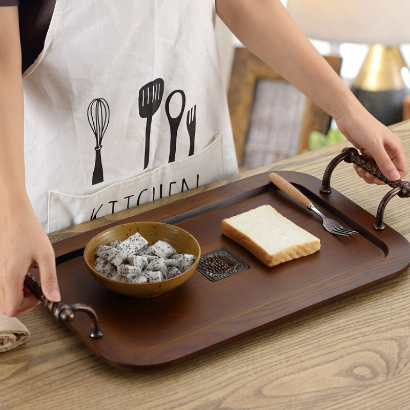 4ah Tray Solid Wood Household American Style Vintage Serving Food Preparation Cake Bread Fruit Tray Tea Tray Cup Tray Meal