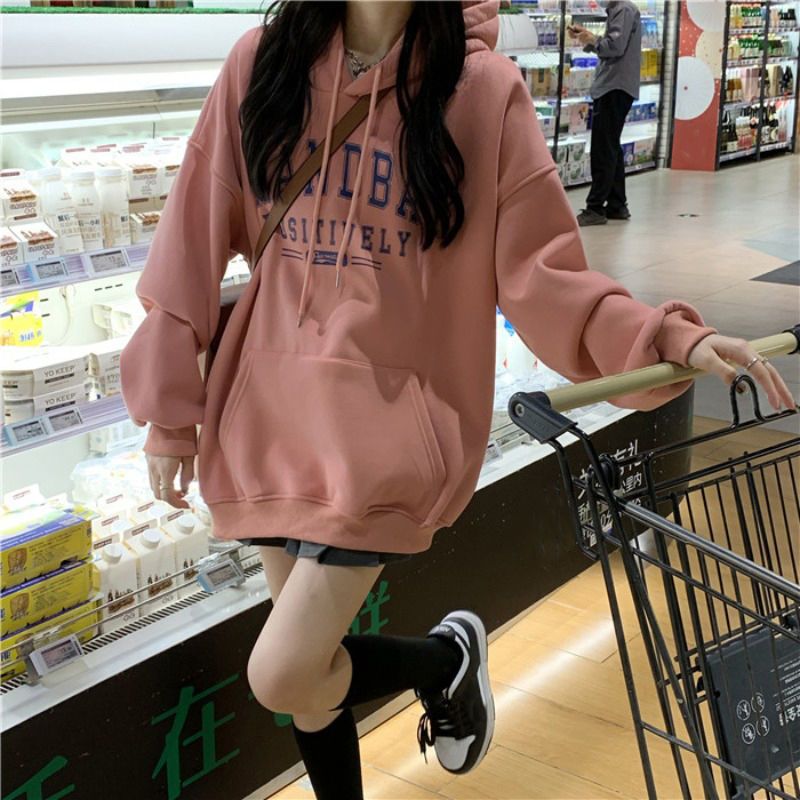 fleece-lined Thickened Hooded Sweatshirt Women’s Autumn and Winter 2022 New Letter Printed Lazy Style Loose oversize Top