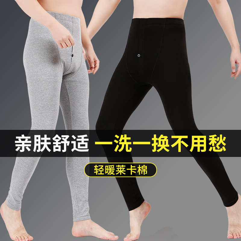 New men’s spring and autumn leggings wear Lycra Cotton slim warm thin stretch high waist wool pants wholesale