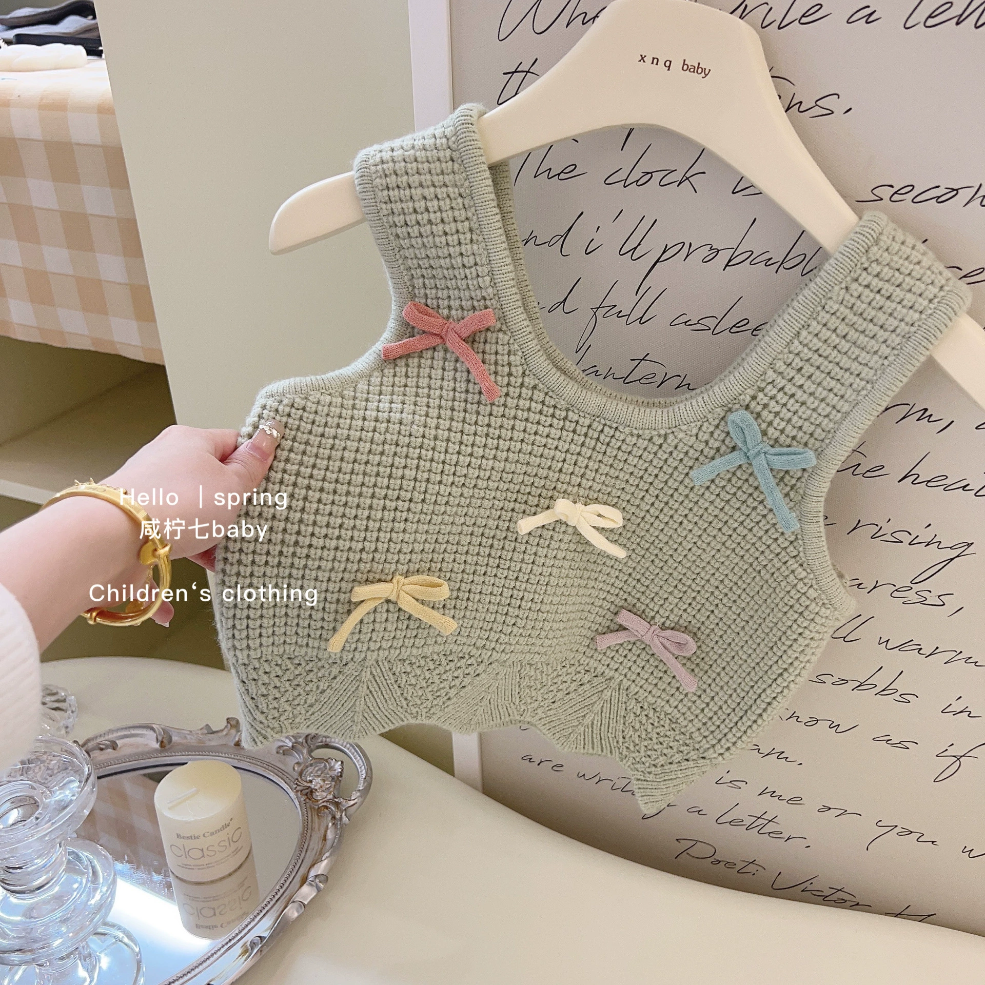 Girls in the spring of 2024 new Korean bow knitted vest vest vest vest denim flared pants foreign gas suits