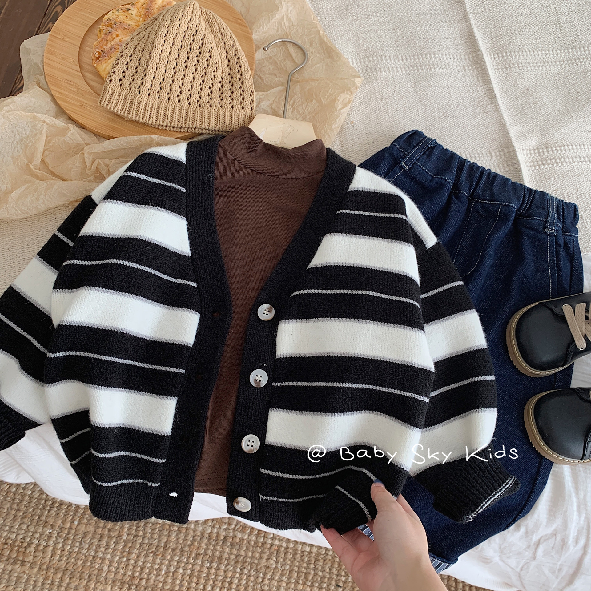 Children’s sweater 2024 Bangcheng spring boys and girls Korean striped lazy sweater cardigan baby coat F0438