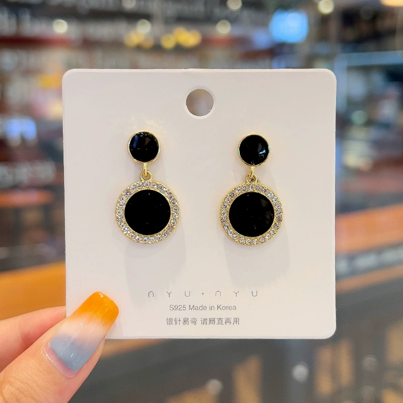 Light luxury black high-quality micro-inlaid niche retro silver needle