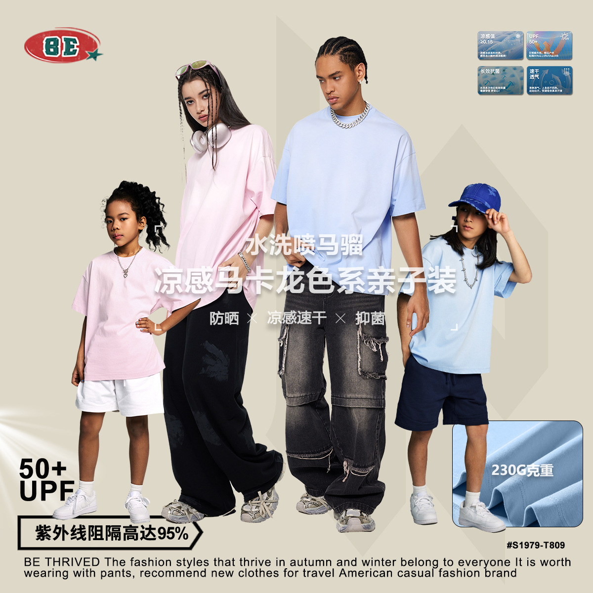 BE parent-child clothing | tide brand cool fabric gradient short sleeve T-shirt Europe and the United States big sports foreign trade for parent-child T-shirt