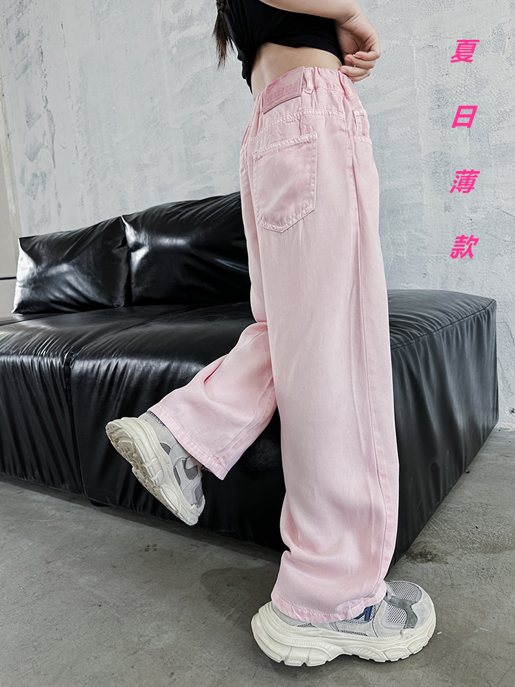 Summer Zhongda Girls’ Lightweight Tencel Jeans Children’s Wear New Arrival Girls’ Wide Leg Loose Straight Leg Pants Soft Trendy