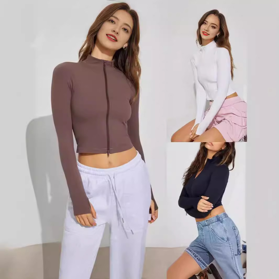 2024 Amazon European and American foreign trade yoga coat new sunscreen stand collar zipper cardigan sports long sleeve coat