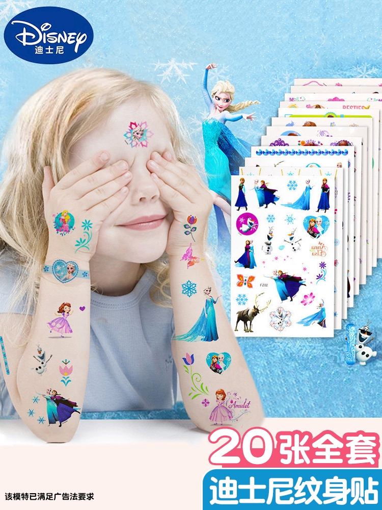 Tattoo stickers for girls and children, non-toxic, washable, cute cartoons, Frozen Elsa Princess transfer stickers, watermark stickers, transparent stickers, female stickers, decorative small patterns