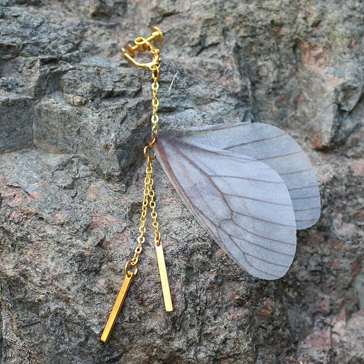Elf in the forest hand-made wing feather earrings angel wings 925 earrings ear hooks without piercing ear clips