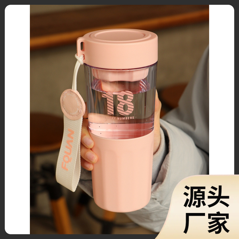 Simple plastic cup for boys with high color value and high temperature resistance for female students to go to school with tea compartment tea cup
