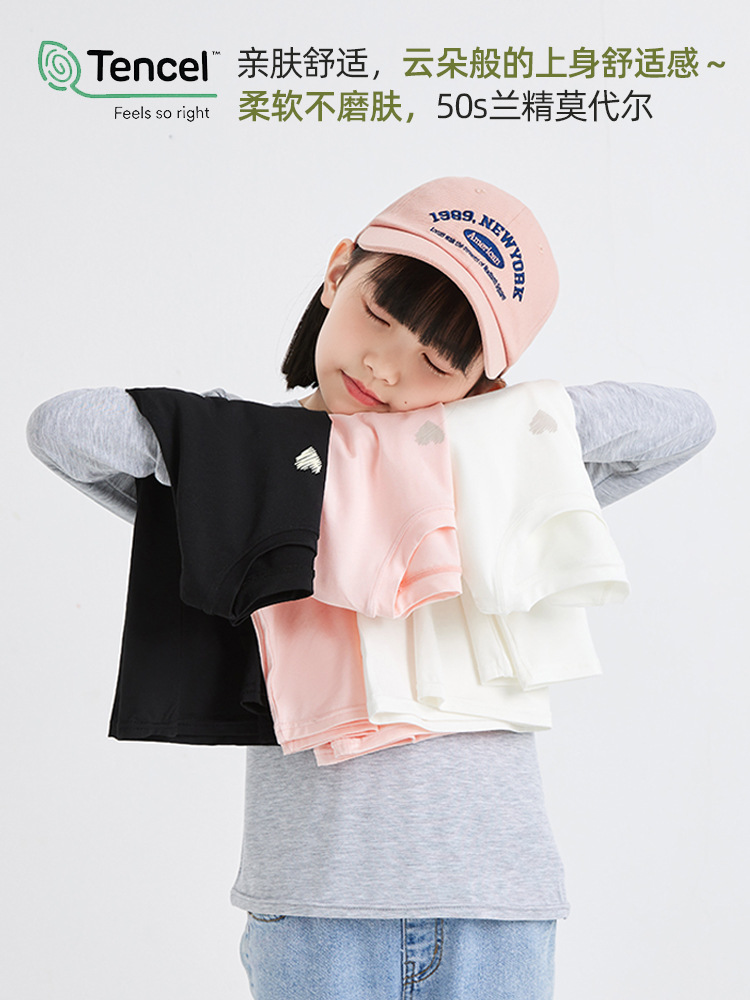 Girls’ Base Shirt Summer Thin Children’s Lanjing Modal Long-sleeved T-shirt Large Children’s Round Neck Base Shirt Class A