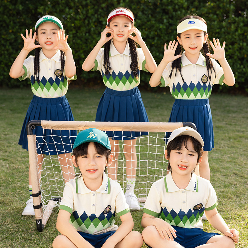 Primary and Middle School Students’ School Uniform Summer Children’s Graduation Class Uniform Kindergarten Garden Uniform Short-sleeved T-shirt Summer Games Suit