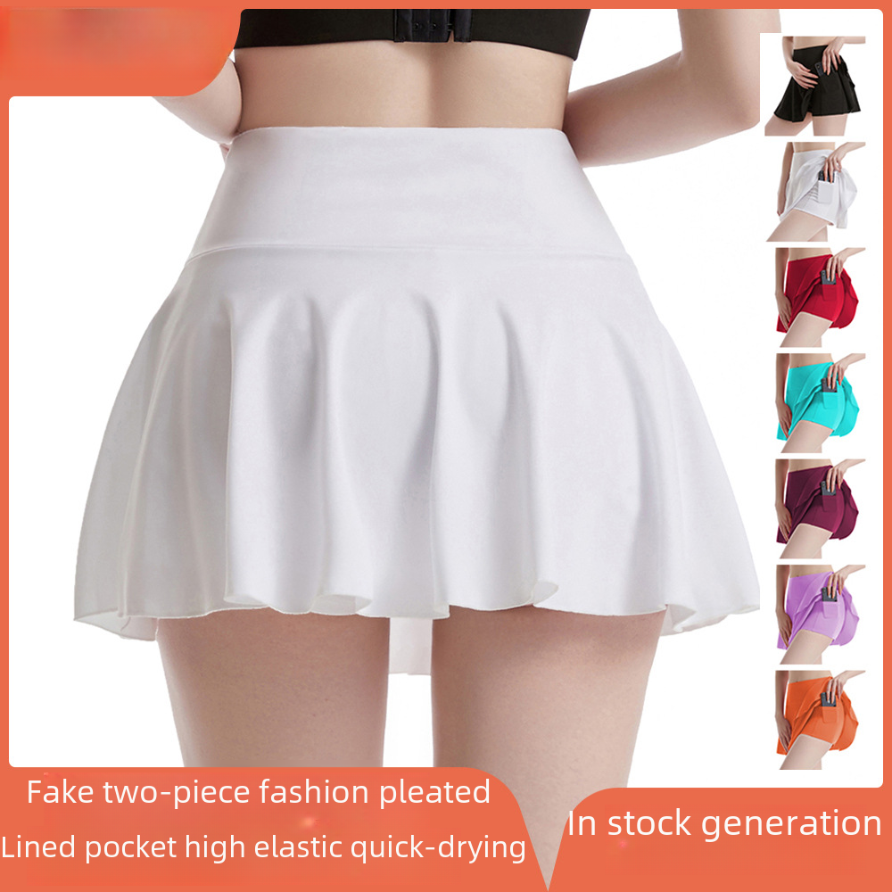 Cross Border Pleated Yoga Skirt Women’s Summer High Waist Naked Sports Skirt Running Training Quick Dry Tennis Skirt