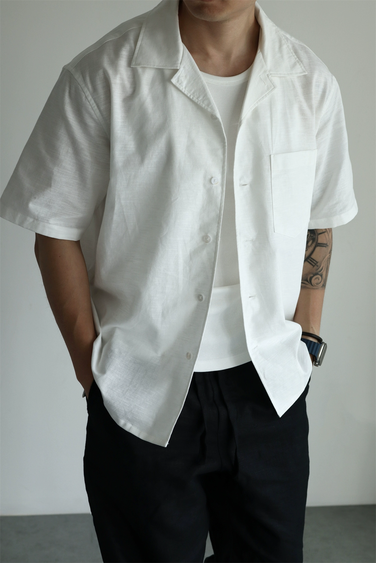 Yuxian cotton blended Cuba collar short sleeve wears linen out of linen