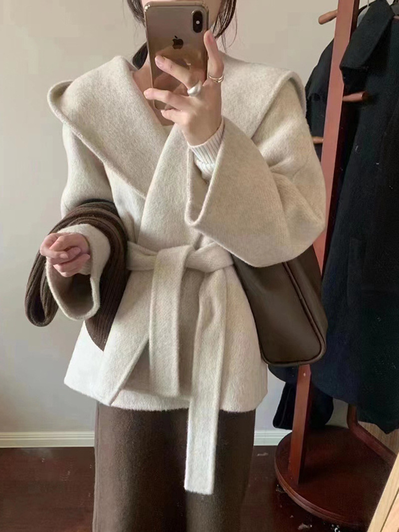 2023 New Bathrobe Hooded Elegant Commuter Double-Sided Wool Women’s Jacket Women’s Casual Wool Coat