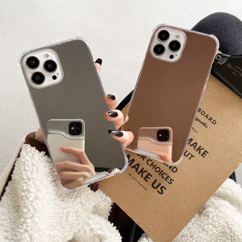 Simple Pure Color 12 Silver Rose Gold 13 Creative Makeup Mirror 14 Makeup Mirror Apple 15 mobile phone case is suitable for iPhone16promax quadrilateral airbag 11 anti -drop transparent protective cover XS