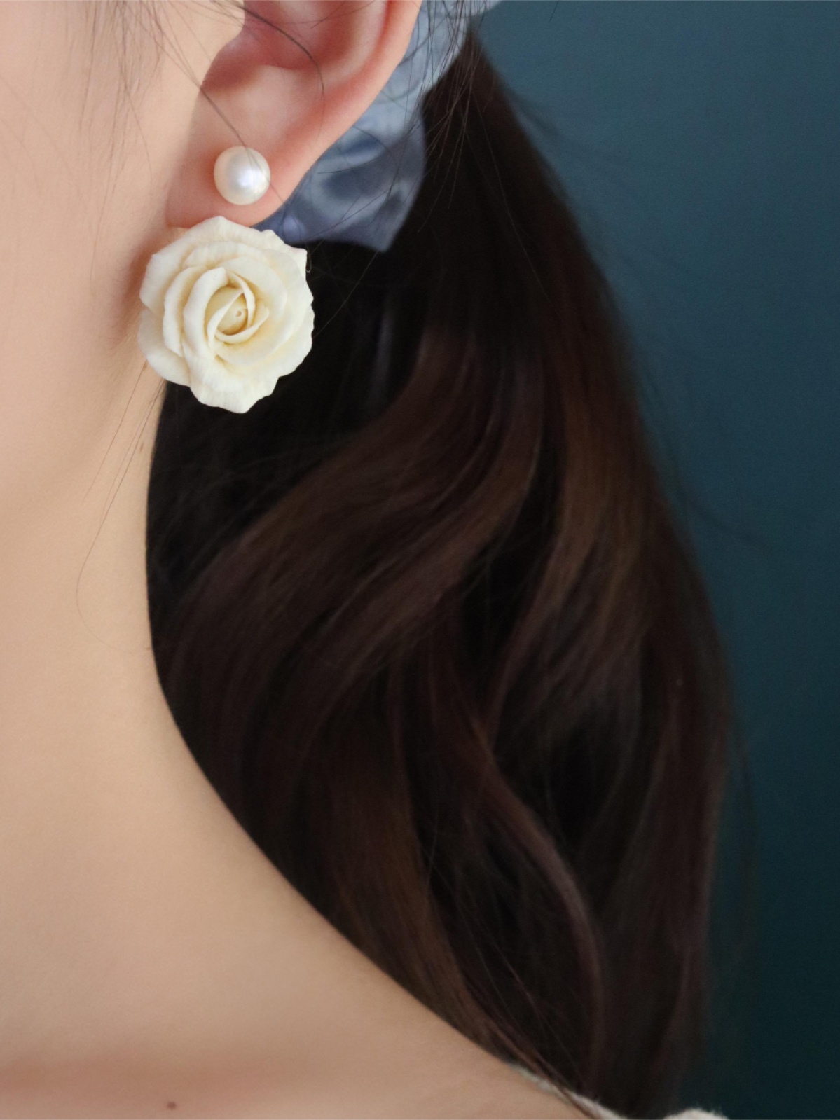 Rose Pearl Soft Ceramic Original Handmade Exclusive Ear Dress