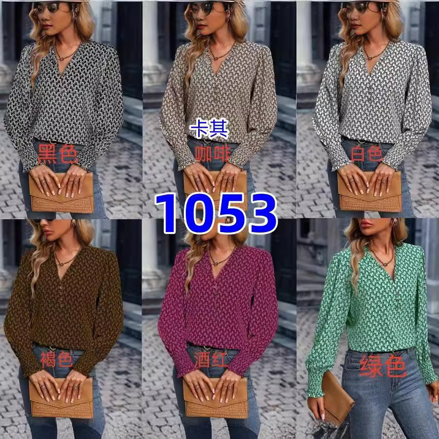 2024 Amazon Europe and the United States foreign trade cross-border new women’s fashion geometric printing loose long sleeve shirt women
