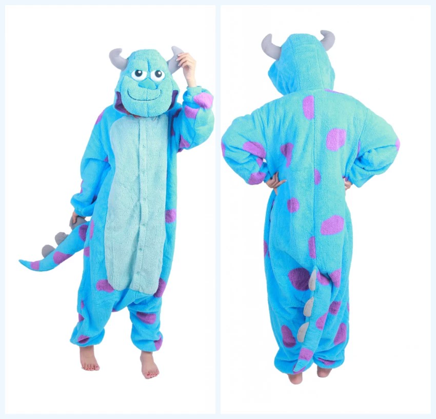 2018 Winter Thickened Monsters University Sullivan Furry Monster Animal Cartoon One-piece Pajamas Plus Velvet Couple Home Clothes