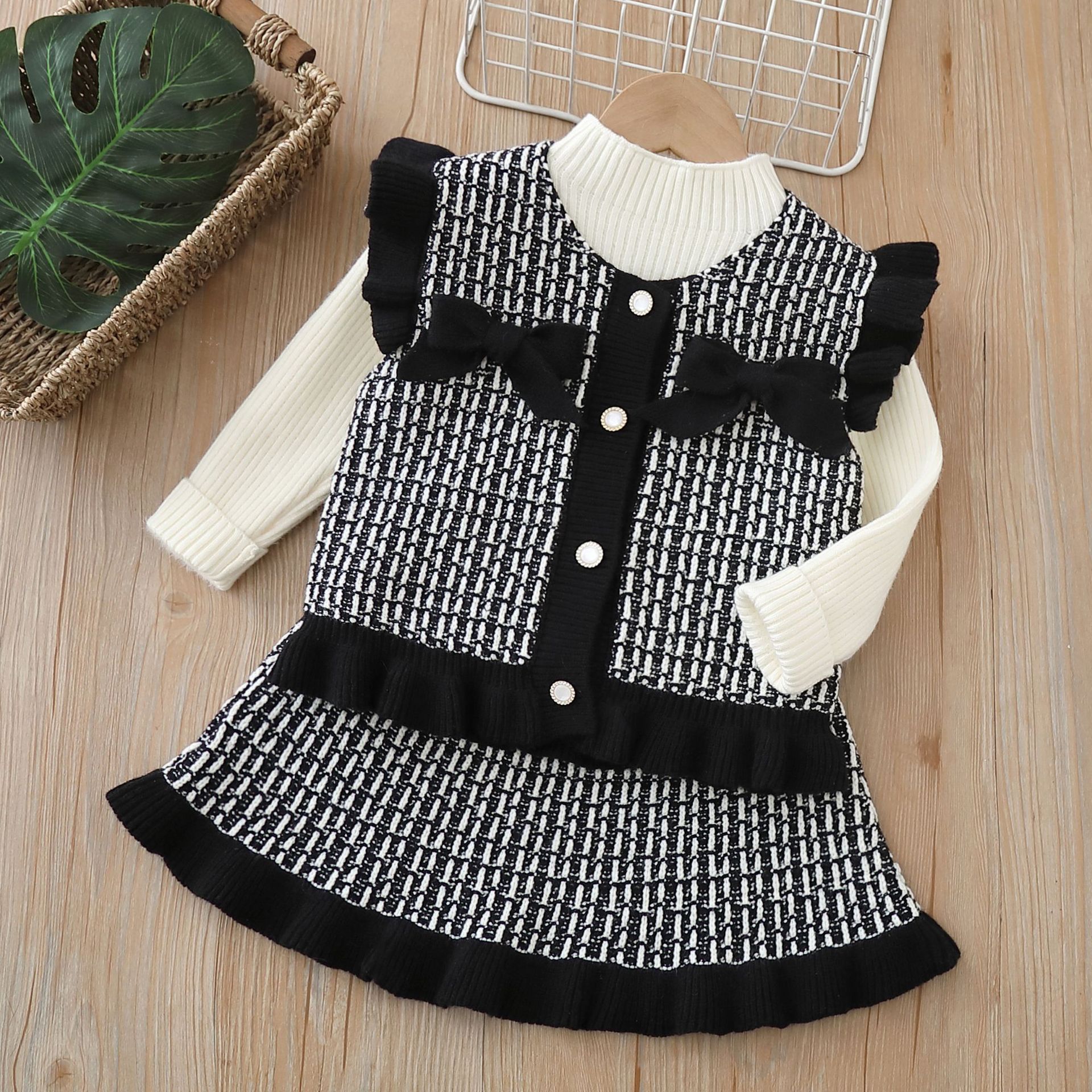 Children’s Sweater Vest Cardigan 2024 Autumn Baby Girl’s Coat Chanel Style suit Girl’s Three-piece Set