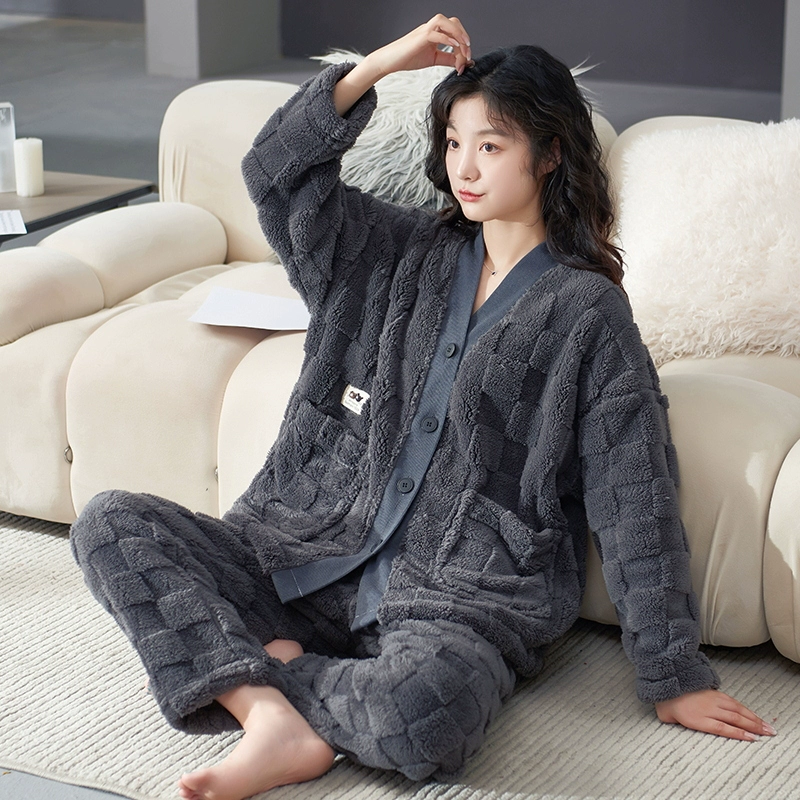 Coral velvet warm thickened kimono women’s black pajamas