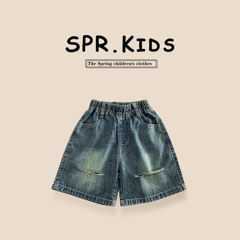Children’s Denim shorts cropped pants Summer 2024 new boys’ ripped pants children’s thin summer clothes western style