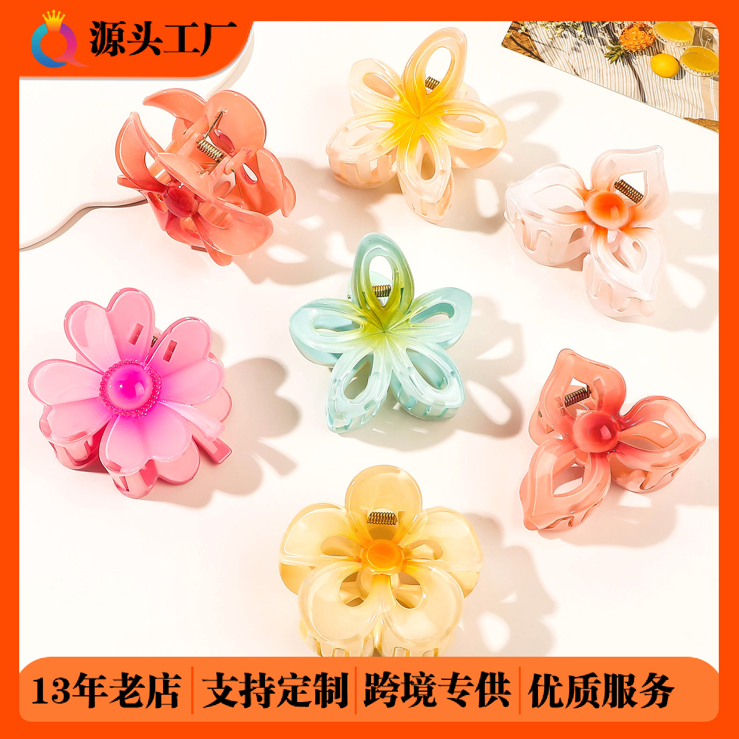 Qiyue cross-border color egg flower hairpin four-leaf clover hair shark clip sweet hair accessories Korean headdress wholesale