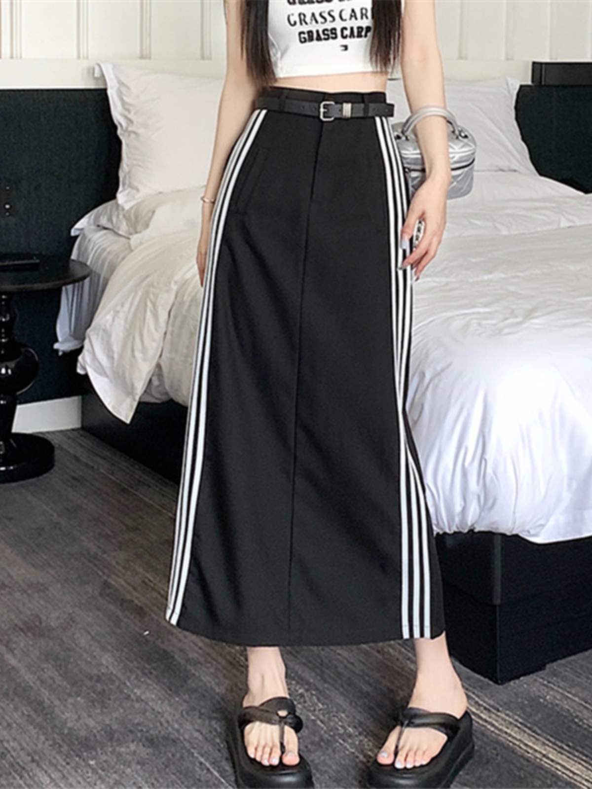 Striped casual a-line skirt pear-shaped figure drape workwear
