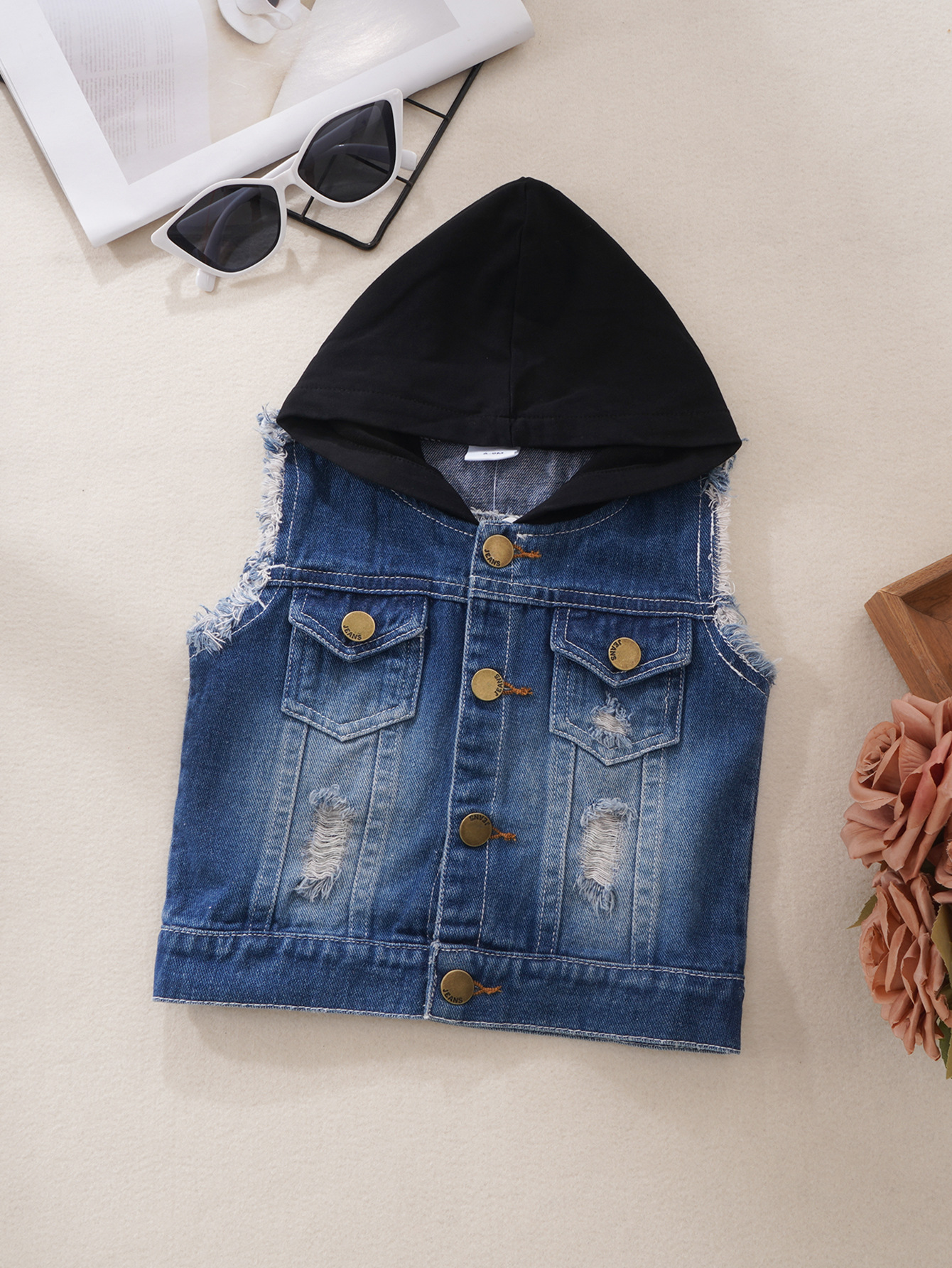 Girl baby jeans hooded sleeveless cowboy coat single-breasted cardigan spring and autumn coat a generation of hair