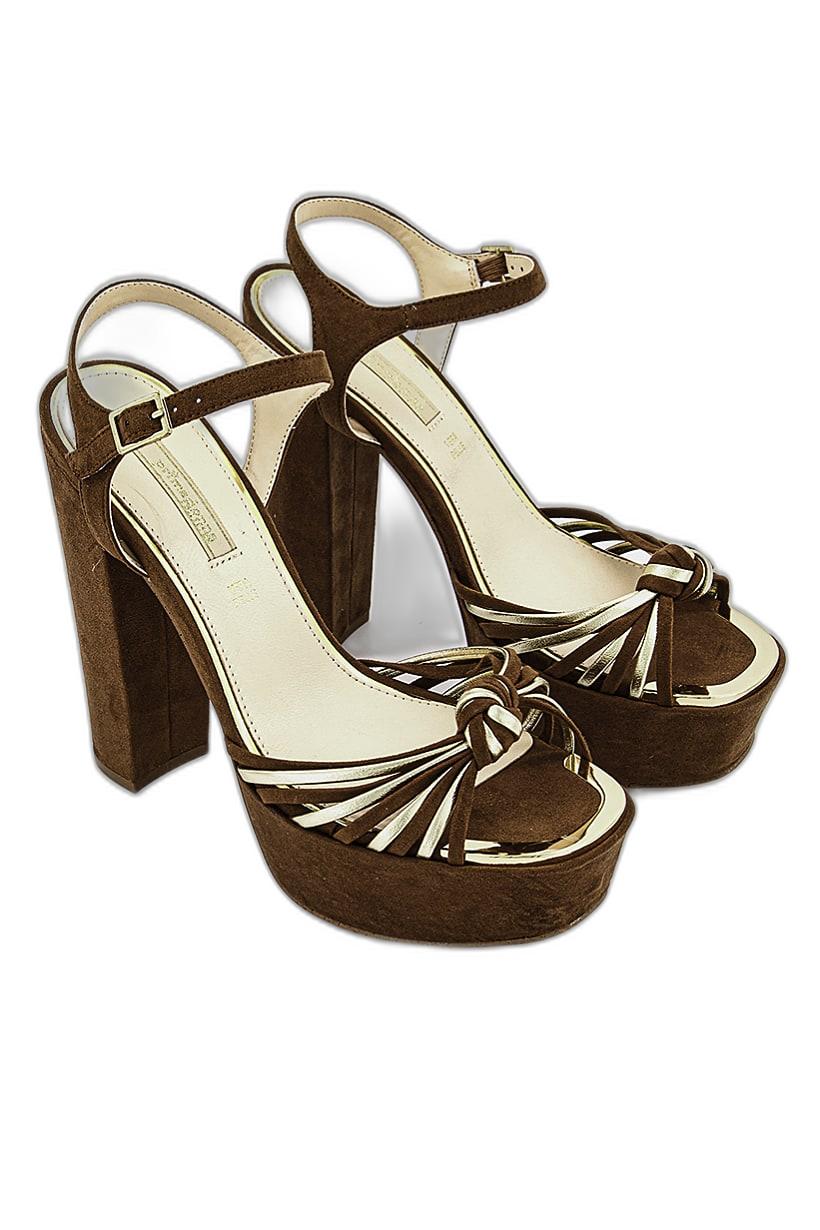 Brown and gold open-toe sandals for women named Knox.