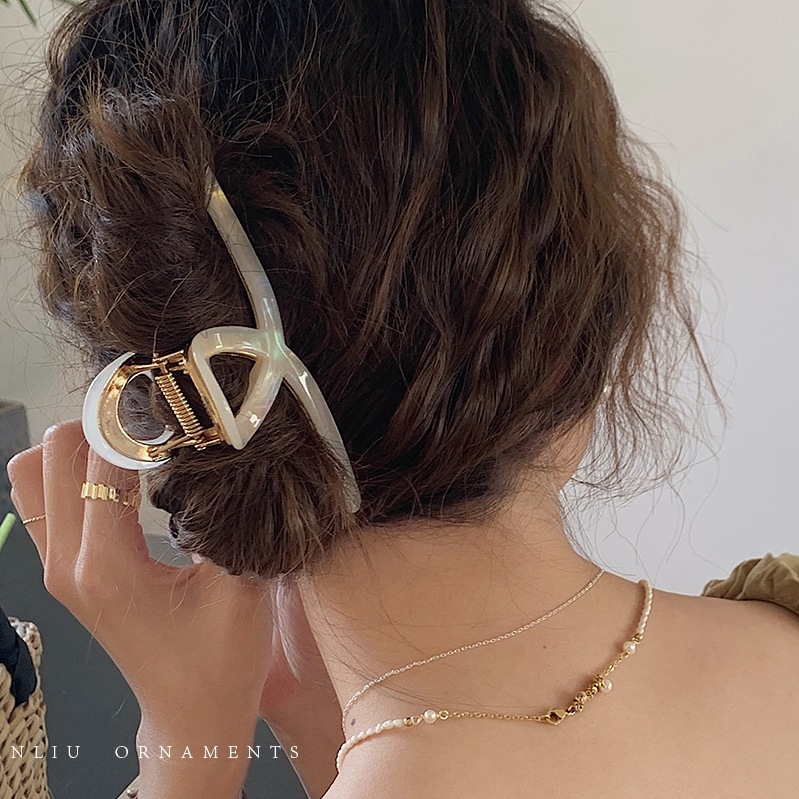 Acetic acid high-grade cross grip clip women’s summer large shark clip back head hair clip 2023 new clip headdress