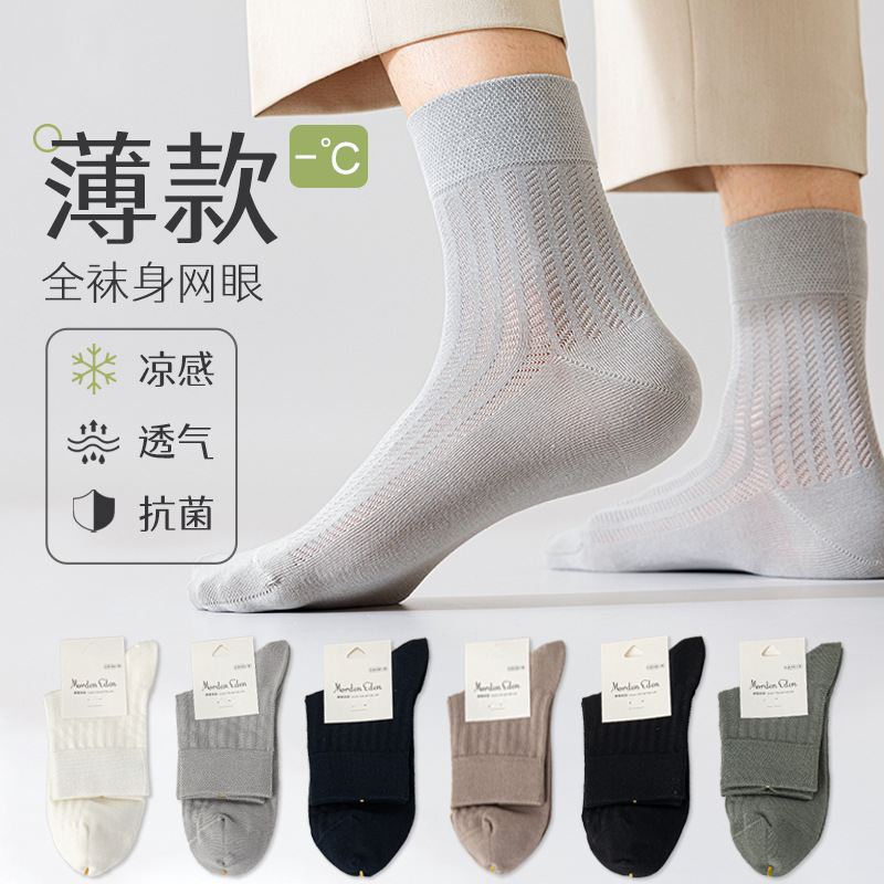 Pure cotton mid-tube socks men’s summer thin mesh breathable boneless stockings sweat-absorbent deodorant antibacterial business men’s socks