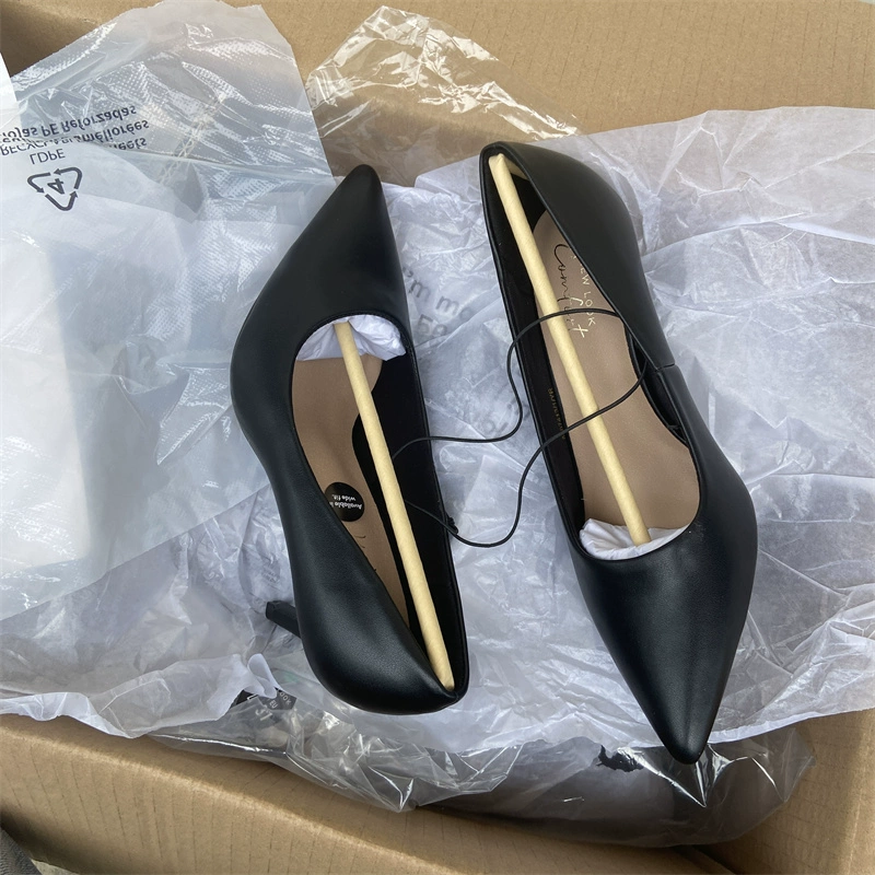 European and American black pointed toe shallow mouth high heels office shoes