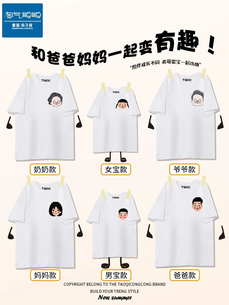 Summer grandparents family portrait T -shirt parent -child installation