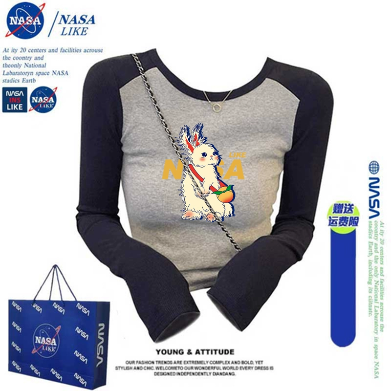 NASA shoulder sleeves High -waist short shirt T -shirt T -shirt spring autumn Korean version of self -sliming inner long -sleeved top female