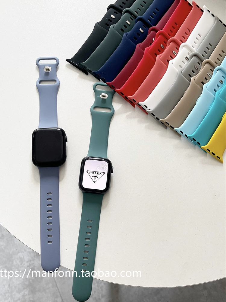 Solid color simple butterfly buckle suitable for Apple applewatch789 watch strap iwatch123456 silicone 10se