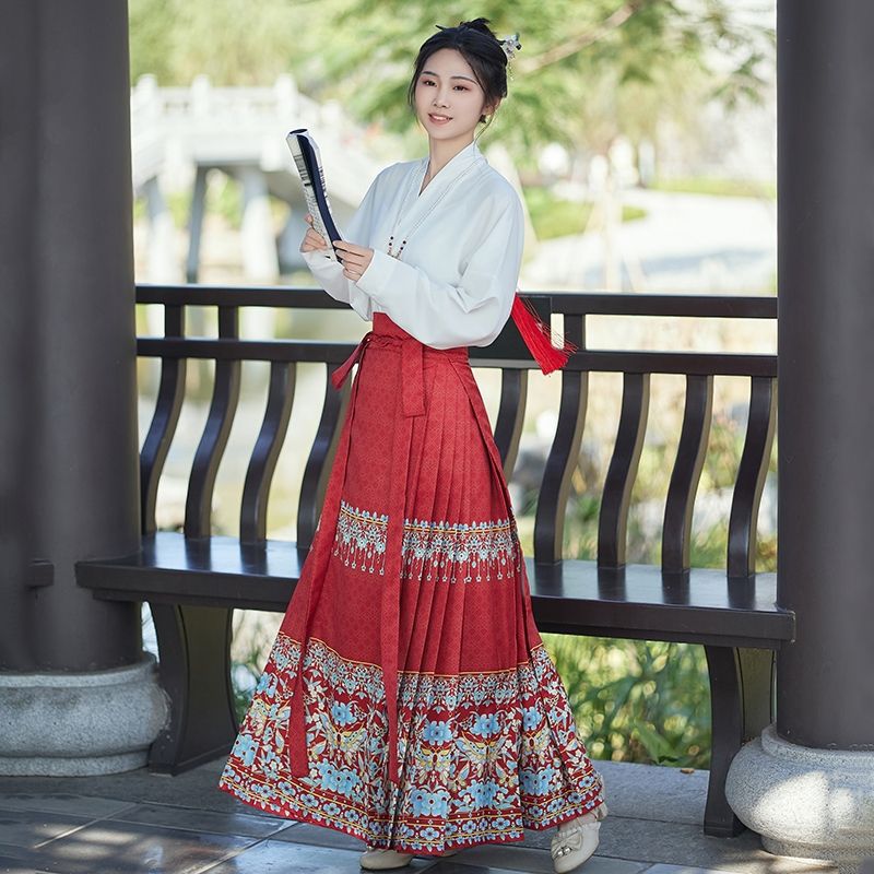 Guofeng Adult Hanfu Horse-faced Skirt Ancient Clothing suit Performance Clothing Toasting Clothing Aircraft Sleeve Horse-faced Skirt Daily Wear