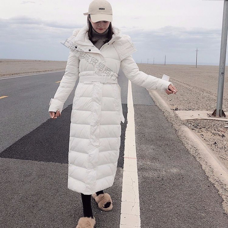 Off-season special sale 2023 new Dongdaemun down jacket Women’s Mid-length white over-the-knee waist slim fit thickened clearance