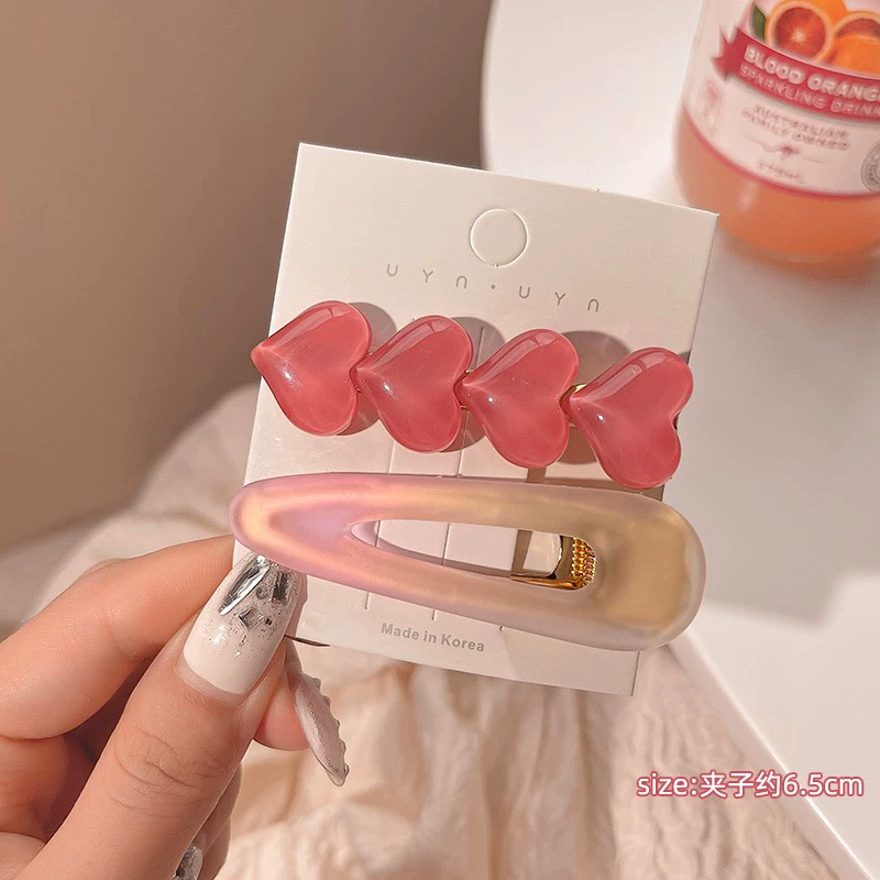 Pink Girl Side Bangs Heart Summer Hair Clip