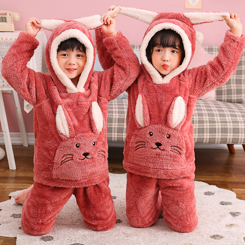 Autumn and Winter New Children’s Flannel Pajamas Set Home Clothes Boys and Girls Children’s Thickened Warm Children’s Pajamas