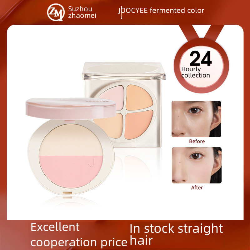 joocyee fermented color powder cake two-color fill light blush highlight matte oil control makeup long-lasting loose powder honey cake