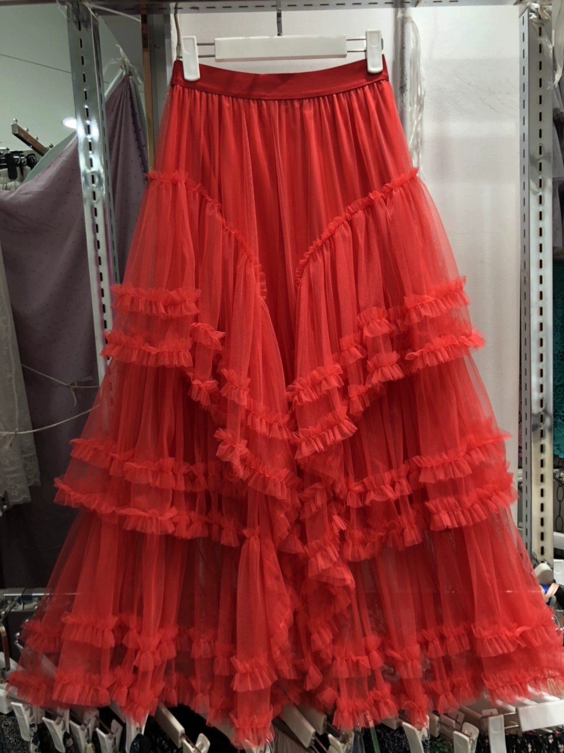 Heavy work thin fairy net yarn large swap A -line skirt lace