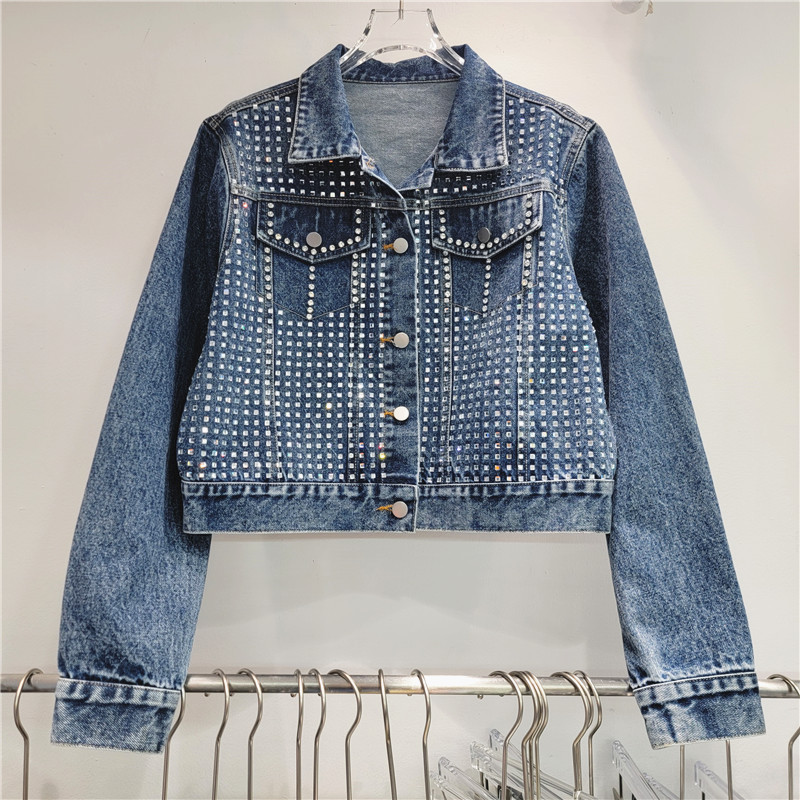 European Station 2024 Autumn New Temperament Loose Joker Fashion Design Sense Heavy Industry Hot Drilling Denim Jacket Women’s Fashion