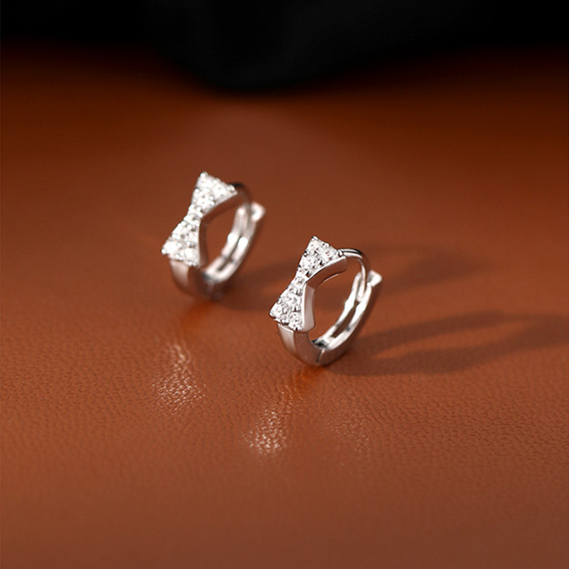925 Sterling Silver Flash Diamond Bow Ear Buckle Female Niche High-end Summer Earrings Light Luxury Earrings Female Earrings Earrings