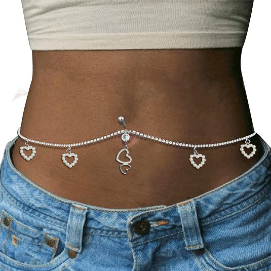 Cross-border summer beach bikini pearl love navel waist chain European and American fashion rhinestone body chain body cha
