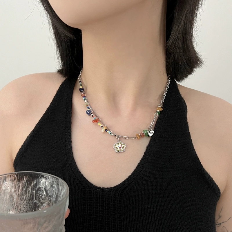 KANSAI colorful beaded smiley face flower stone splicing necklace niche personality design sweet and cool hot girl accessories