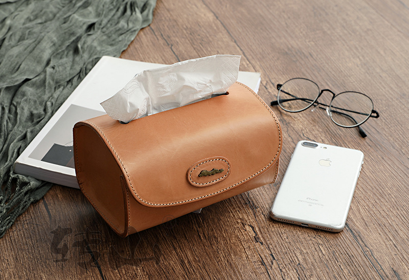 Vegetable tanned leather handmade leather household products tissue box leather case paper vintage leather crafts gift customization