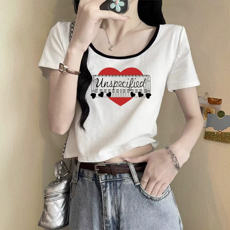 European station on the shoulder color, color cotton short -sleeved T -shirt in summer