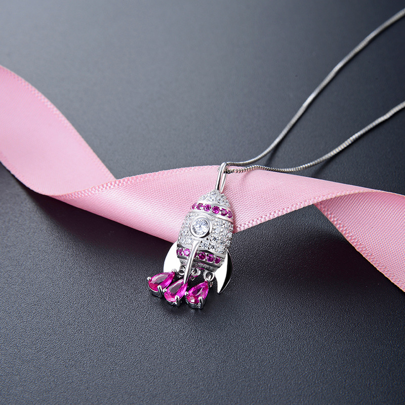 Korean fashion temperament clavicle chain girl accessories s925 silver diamond zircon creative personality rocket necklace pendant