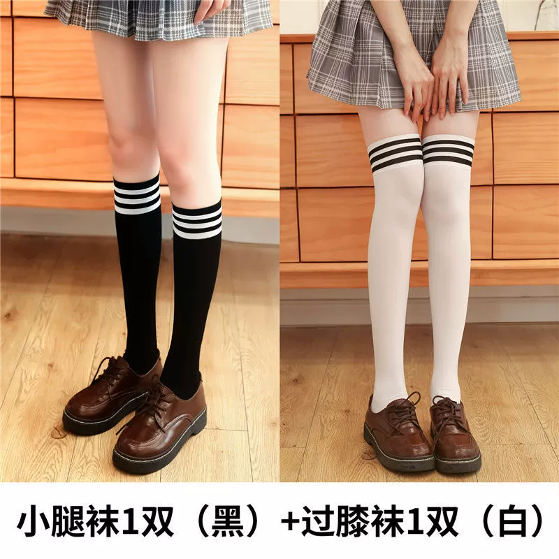 Thin legs calf socks female students thin knee socks cute Japanese mid -long stockings white striped velvet tide