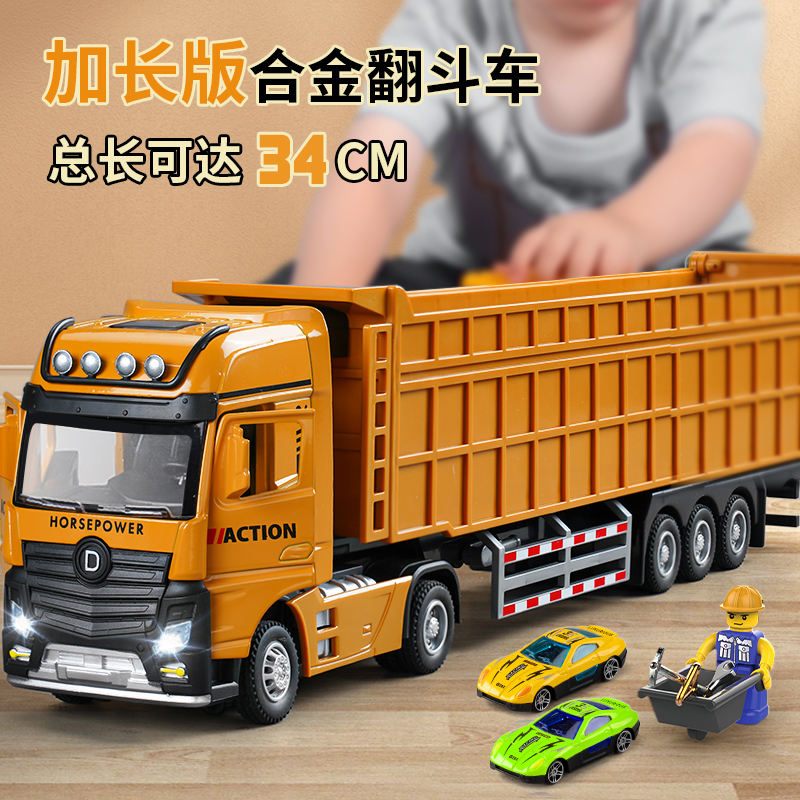 Lengthened alloy dump truck toy pull back dump truck truck truck inertial transport truck boy model