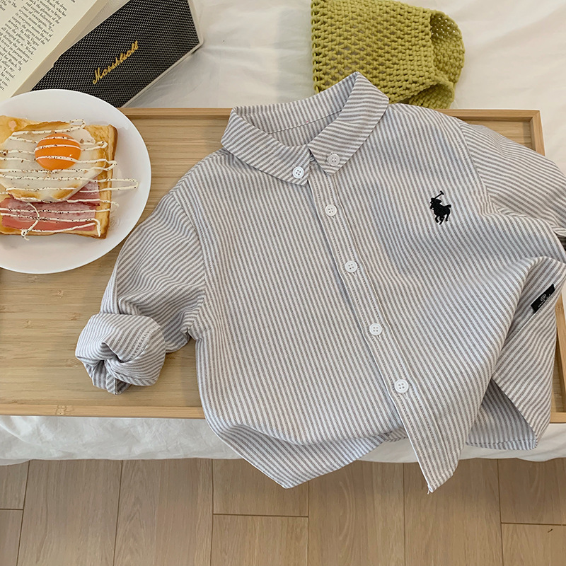 Tong Chenchen Mom Men’s Children’s Wear Striped Shirt Baby’s Top Autumn Clothes Children’s Long Sleeve Preppy Style Shirt Cartoon All-Match